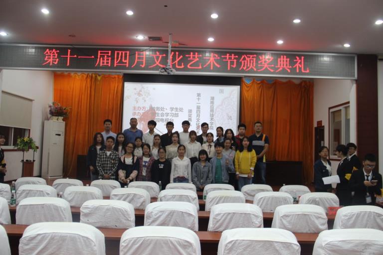 2018年5月30日晚上7:00于广言堂举行了第十一届四月文化艺术节颁奖典礼。莅临本次大会的领导有学生处处长贺修裕、学生处处长李波和机电工程学院院长候飞燕。获奖名单如下:获奖名单 英语嘉年华冠 军: 电商B1702 李钰纯 亚 军: 电商B1701 司汶沁季…
