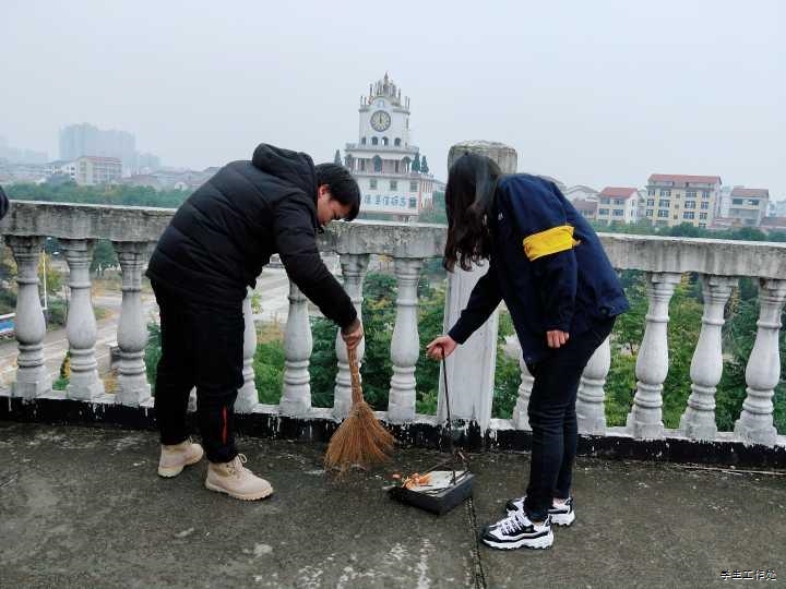 2017年11月29日中午,校学生会组织各部门负责人一起开展了学院天台大扫除活动。在郭拯民主席的带领下,校学生会干部们分头行动、相互协作,对学院天台进行了全方位大扫除。