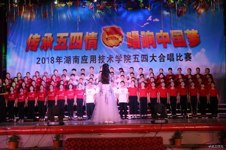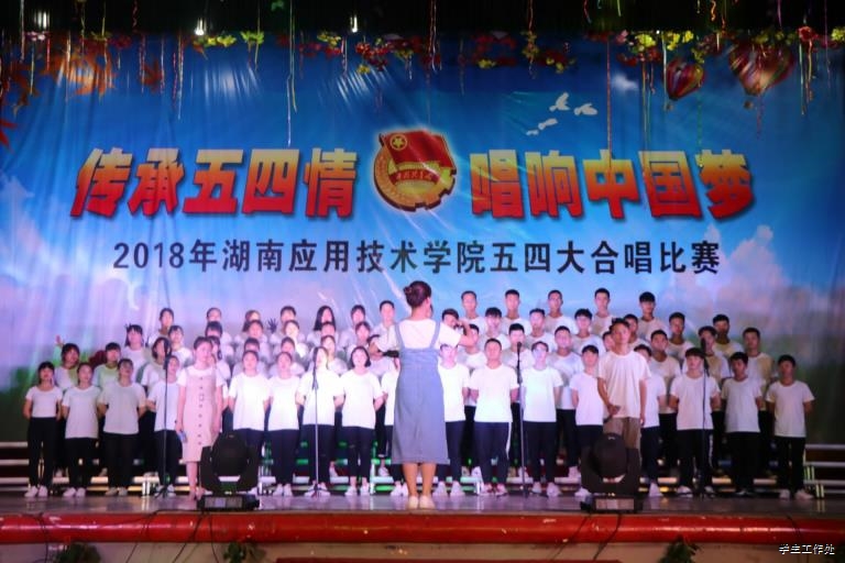 有人说,青春是一首歌,回荡着欢快、美妙的旋律;有人说青春是一幅画,镌刻着瑰丽、浪漫的色彩。为了纪念五四。湖南应用技术学院在2018年5月3号举行了“传承五四情,唱响中国梦”,让我们共同怀念五四的精神,在五四合唱中,我们唱出了活力,唱出了青春,唱出了湖应学子的蓬勃朝气。