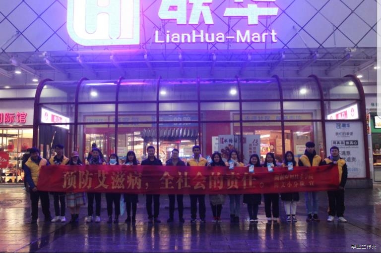 为进一步深入开展防艾预防教育工作,提高社会群体对防艾的知晓率,扩大艾宣受众面,12月27日下午,湖南应用技术学院组织“艾你的心一湖应小分队”志愿者在南城天街开展了以“预防艾滋病,全社会的责任”为主题防艾宣传活动,本次活动由学工处李波副处长和刘祥老师带队。