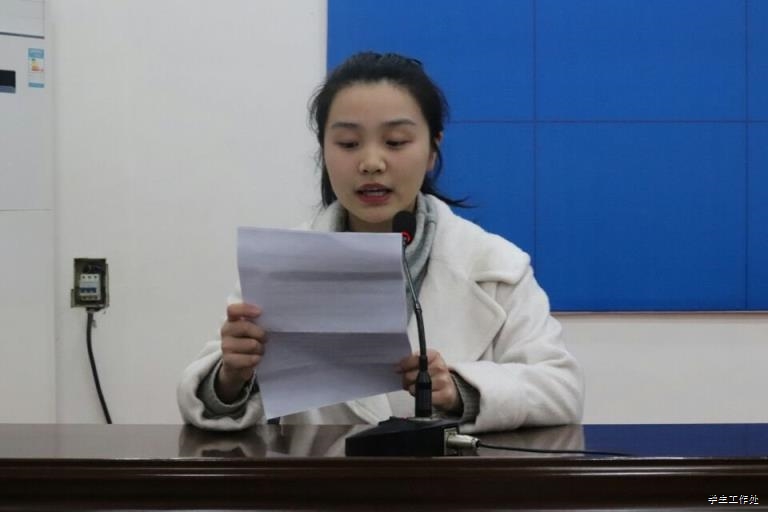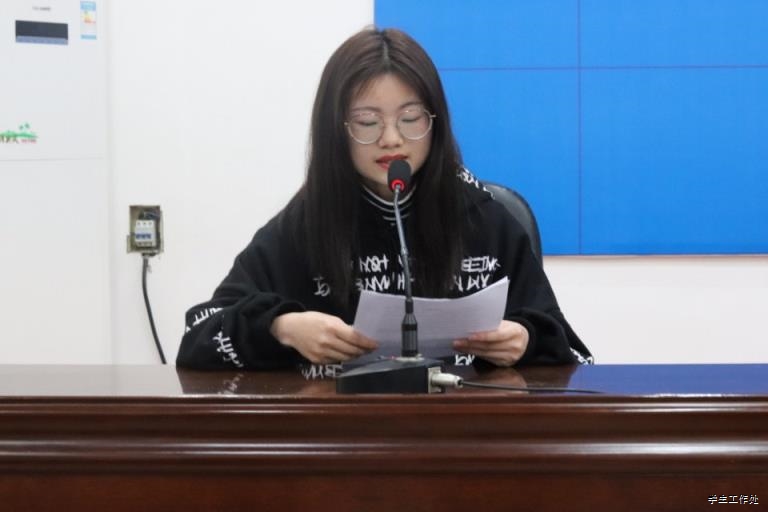 之后,由院学生会学习部代表谭赛发言。学生会是学生自我教育自我管理自我约束的团体, 它在学生的日常工作中起到了积极有效的作用。承办了第十二届“同德杯”校园辩论赛并圆满完成。“路漫漫其修远兮,吾将上下而求索”。有大家的支持,学生会才能越走越远。