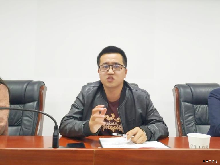 其次,由校学生会生活部副部长机电B1702班的刘治文发言。他总结了上学期各生活委员的工作并对此提出了表扬与感谢。在食堂执勤这方面,他针对上学期收到的关于食堂管理的建议,也表示生活部已整理核实完毕交由相关单位处理。对于本学期的工作开展以及优秀生活委员的评定标准,他提出了有关要求及相关建议并整理了一些须严肃处理的违纪情况。有了各位生活委员的付出以及同学们的支持,生活部才会越走越长远,学生会才会越走越长远!