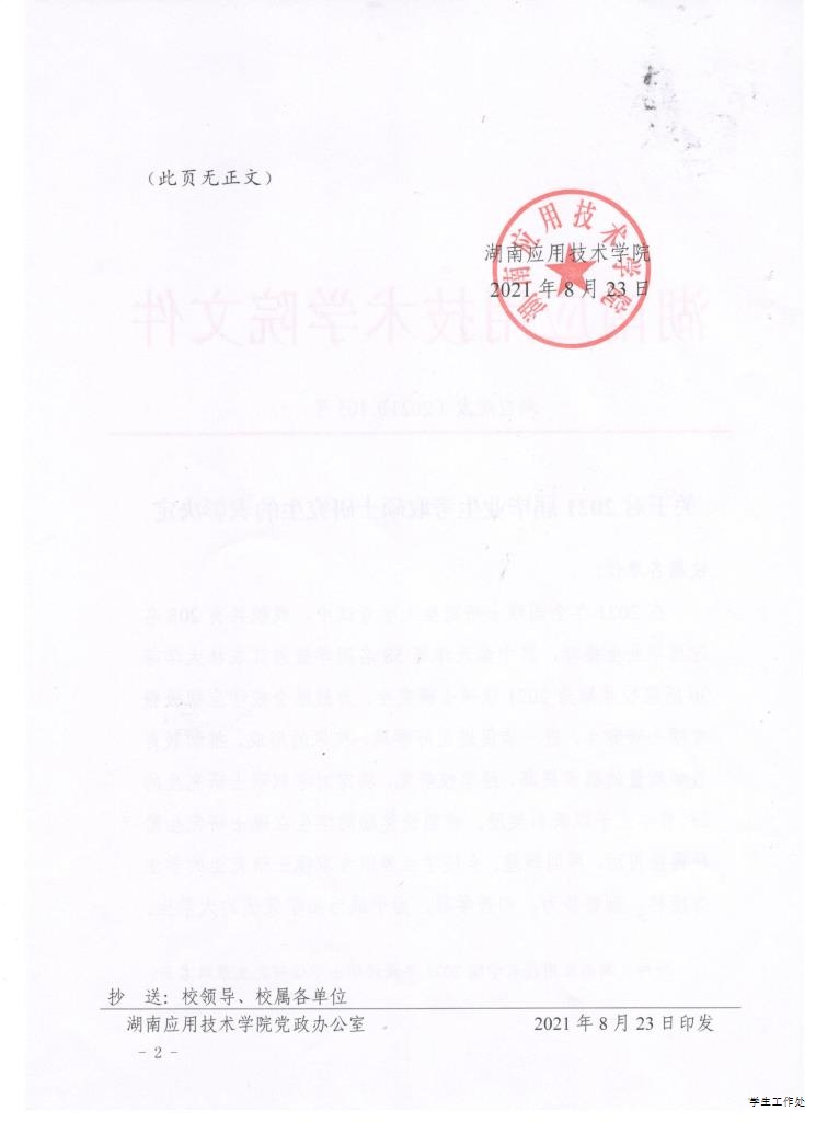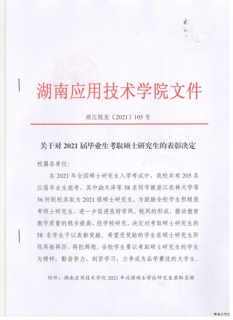 湖应院发〔2021〕105号 关于对2021届毕业生考取硕士研究生的表彰决定