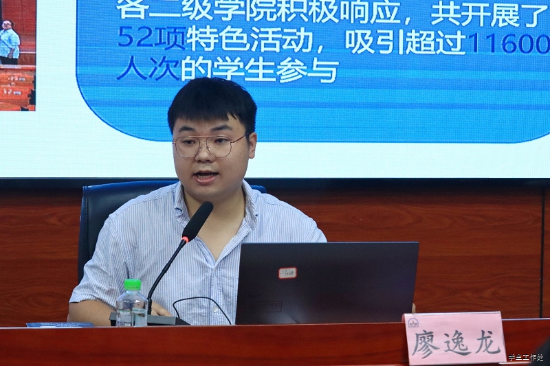 会上,廖逸龙作了2025年上学期学生工作总结报告。报告全面梳理了上学期学生工作在制度创新、主题活动、精准资助、心理健康、国防教育、社区育人、优良学风、思政队伍锻造八个方面取得的显著成效,总结了上学期各学院学生日常管理工作科学化、精细化的考核结果,客观分析了当前工作中存在的不足与挑战,并对全体学工人员的辛勤付出表示充分肯定。