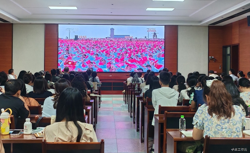 在会议结束后,值此纪念中国人民抗日战争暨世界反法西斯战争胜利80周年大会隆重举行之际,学工系统全体同志集中观看九三阅兵仪式,共同见证这一具有重大历史意义的国家盛事。习近平总书记的讲话铿锵有力、振奋人心,随着受阅士兵们一声声:“正义必胜!和平必胜!人民必胜!”大家心潮澎湃,热血沸腾,在和平鸽翱翔天际之时,现场赞叹声不绝于耳。