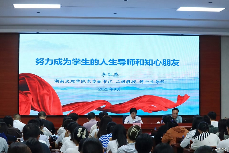 9月3日下午,湖南应用技术学院2025年管理干部暑期培训进入第二阶段——分线(系统)授课与研讨交流。学工线培训专场特邀湖南文理学院党委副书记、二级教授、博士生导师李红革来校作专题讲座。会议由校党委委员、副校长丁春茹主持。学工处、武装部、团委全体人员,各学院党总支副书记、学工办主任、辅导员、学工干事及全体宿管员共同参加学习。