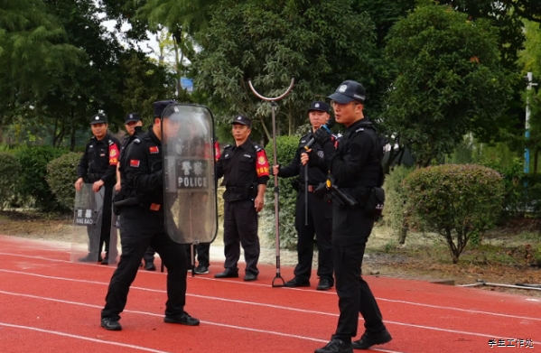 校警卫队模拟“遭遇持械恐怖袭击”场景,开展了反恐防暴实战教学。通过现场演示,警卫队员指导师生如何运用身边常见物品进行有效防护,例如利用盾牌、防护装备进行隔挡,使用拖把、钢叉等工具保持安全距离,或借助课桌等障碍物延缓对方行动。教学过程中反复强调,在紧急情况下应避免与袭击者正面冲突,首要确保人身安全。