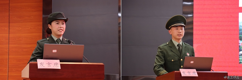 退役大学生代表发言环节,我校社团“零零支队”的凌振兴、程莘茜同学讲述了从校园到军营的成长蜕变,展现了参军入伍对个人意志、能力与品格的深刻锤炼。