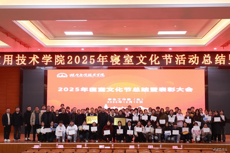 12月10日晚,我校在43D二楼报告厅隆重举行2025年“‘寝’心相伴,‘寓’你同行”寝室文化节总结暨表彰大会。党委委员、副校长丁春茹出席大会,学生工作部(处)部长刘治国,团委书记、副处长陈磊,副处长范青、廖逸龙,各二级学院党总支副书记,全体辅导员、宿管员、学生自律委员会干部及各学院学生代表等700余人参加。