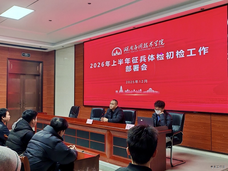 为确保初检工作顺利推进,学校武装部于12月9日晚在西校区42D视频会议室组织召开2026年上半年征兵体检初检部署会。武装部部长刘治国出席会议并作动员讲话,武装部干事陈苏正及全体应征报名学生参会。