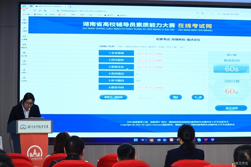 本届竞赛以“以赛促学、以赛促练、以赛促建”为宗旨,旨在全面提升辅导员的理论素养、专业能力与实践水平,共有来自各学院的12名辅导员进入校级决赛。首日赛事重点围绕辅导员的基础业务能力和主题教育设计与组织实施能力展开,分为“描述定位”与“主题班会”两个环节进行现场比拼。