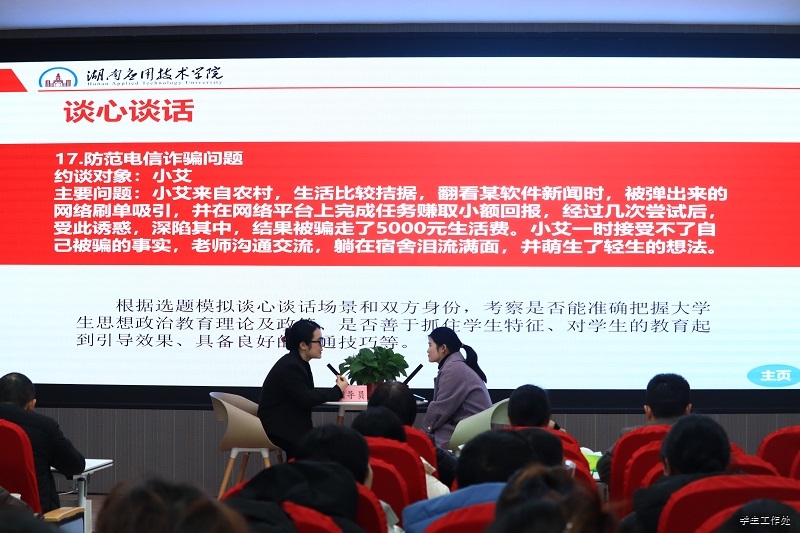 次日进行的“谈心谈话”与“案例研讨”环节,更是对辅导员理论应用、应急处理、沟通技巧与思辨能力的综合考验。比赛中,选手们沉着应对,展现了扎实的理论基础、丰富的实践经验以及对学生成长成才的深刻理解和真挚关怀。