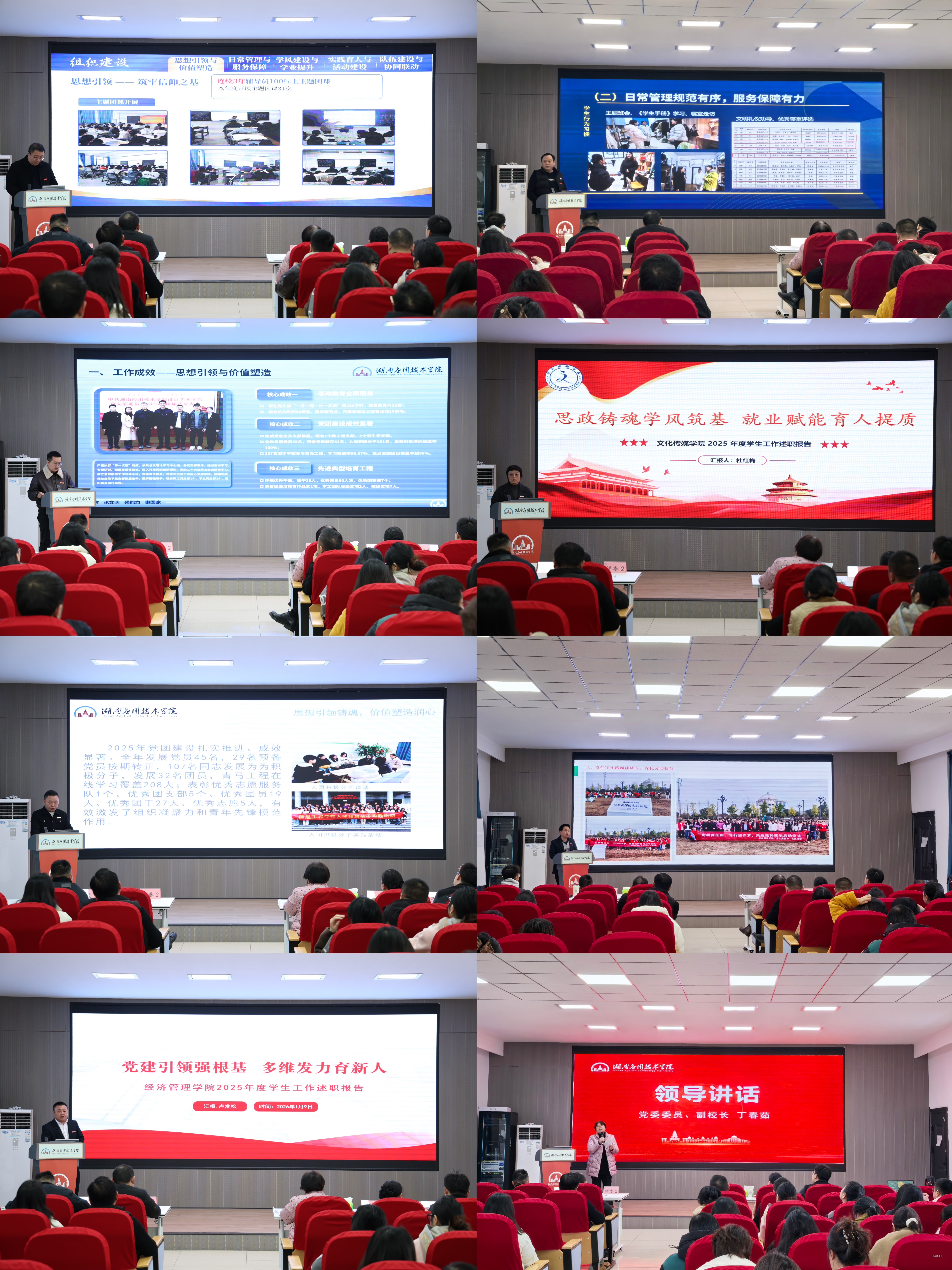 会上,7个学院的党总支副书记紧密围绕立德树人根本任务,依次进行现场述职。全面展示了各学院在思想引领、学风建设、管理服务、实践育人、队伍建设以及特色品牌凝练等方面的主要举措与突出成效,客观剖析了存在的问题与不足,并提出了下一年度的工作要点与改进思路。述职过程严谨务实,亮点纷呈。