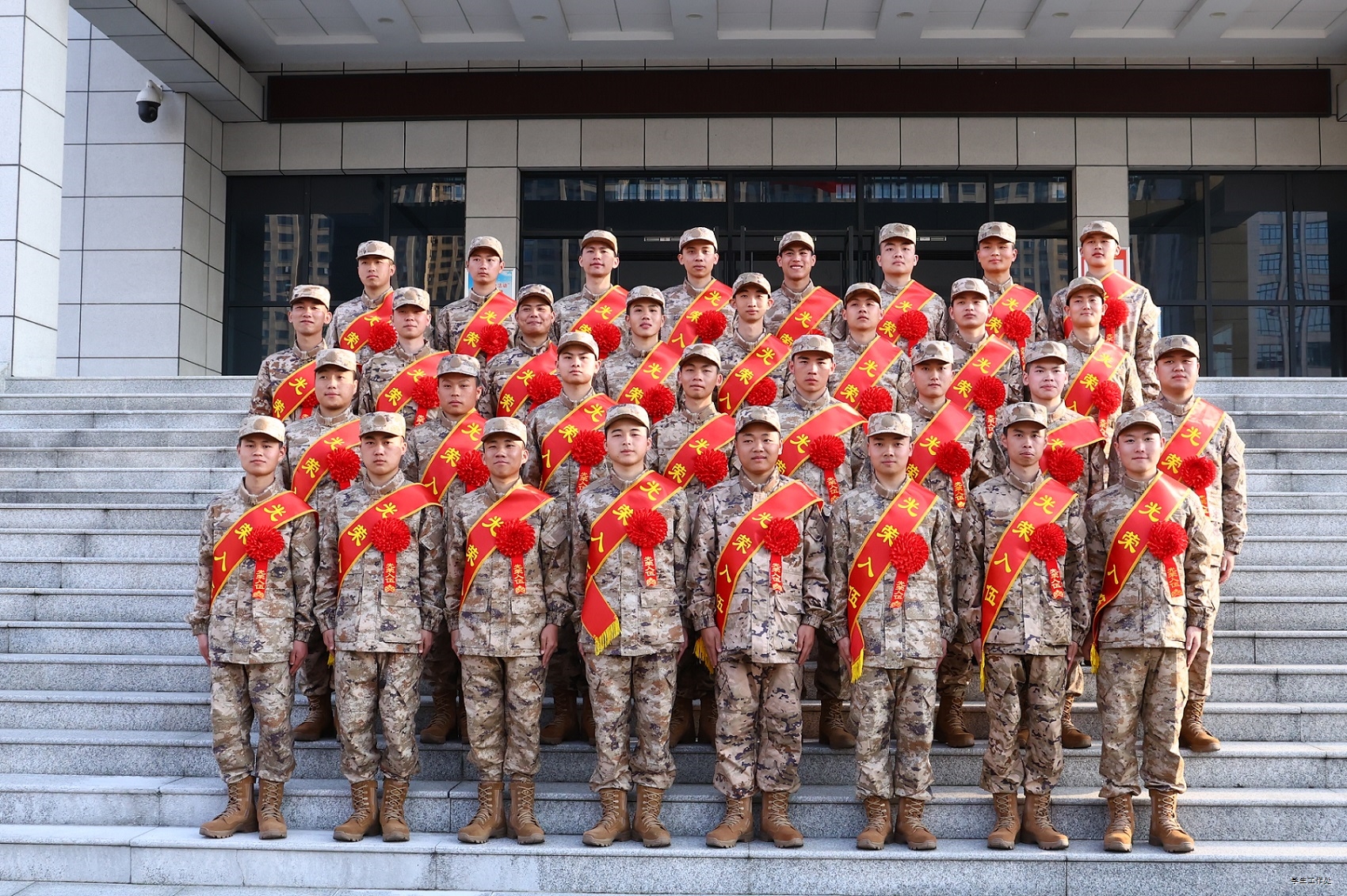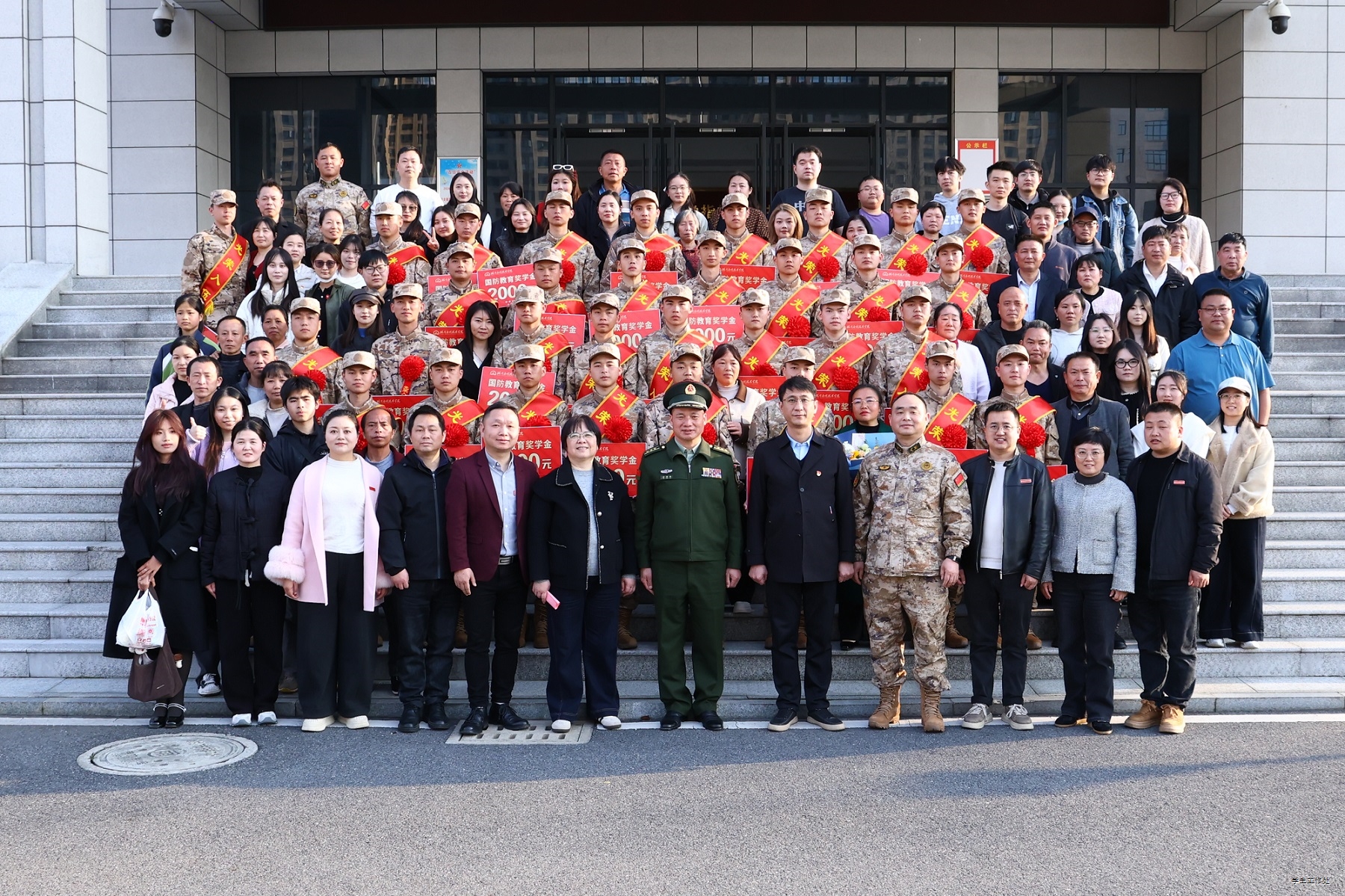 仪式最后,与会领导、辅导员、家长与全体新兵合影留念。此次欢送仪式既是一次出征壮行,也是一堂生动的国防教育课,充分展现了学校学子浓厚的家国情怀和使命担当,为持续深化学校国防教育、引导更多优秀青年投身强国强军事业营造了浓厚氛围。