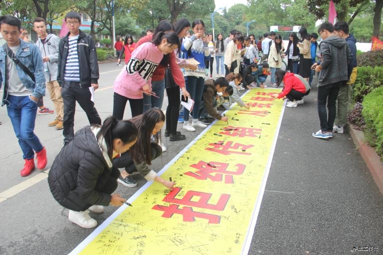 三是全体参会同学到东校区校门口参加“拒绝传销、从我做起”签名活动,活动在热烈又有序的氛围中落下帷幕。